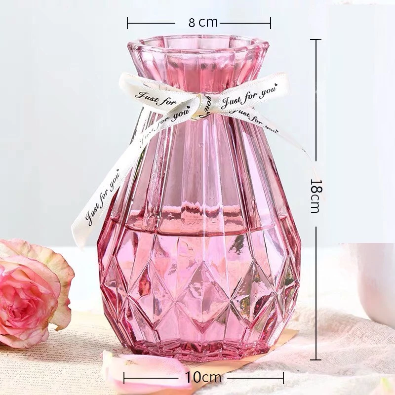แจกันดอกไม้ แก้วโปร่งใสสีชมพู