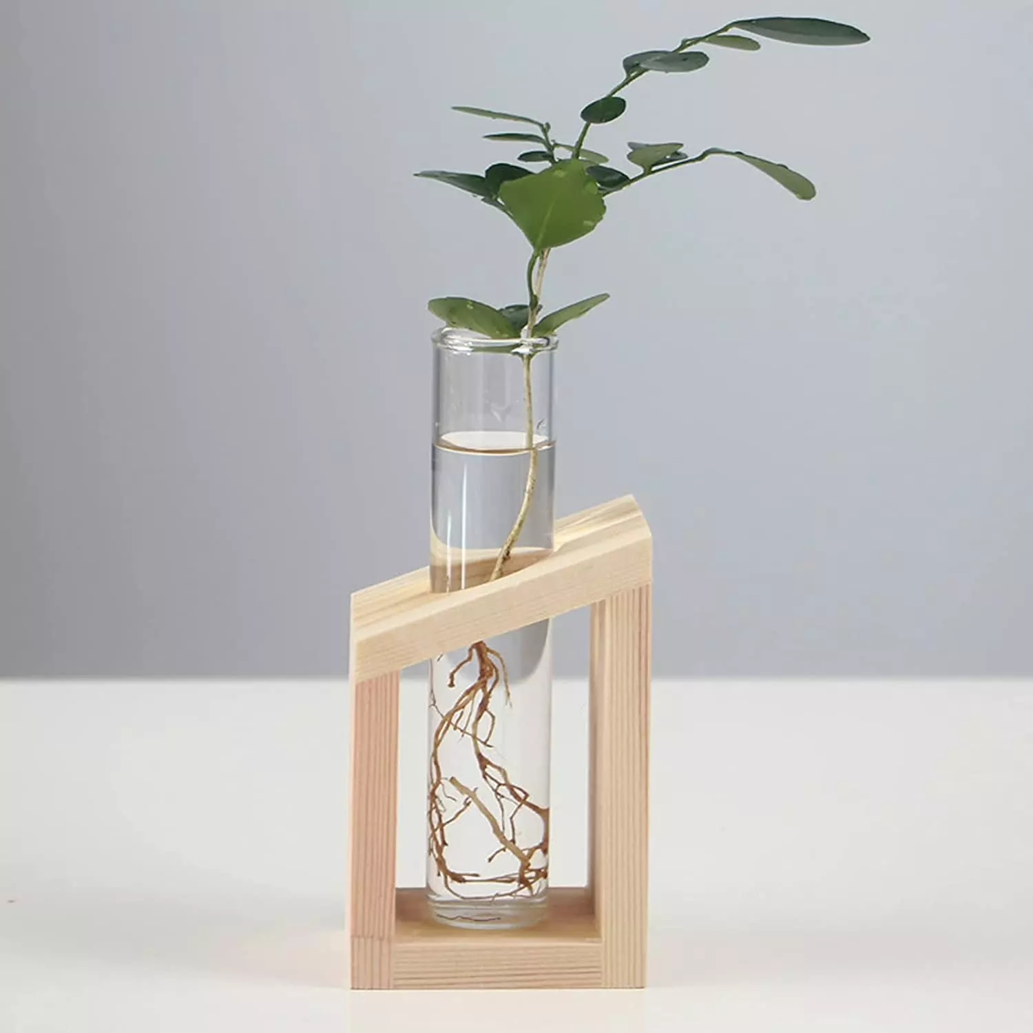 แจกันแก้วไฮโดรโปนิก กรอบไม้ เรียบง่าย สําหรับตกแต่งบ้าน